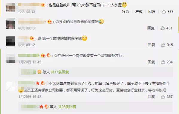 對此,網(wǎng)友紛紛直呼:什么仇什么怨?這是要有天大的仇才能干出這種事吧。如果該公司創(chuàng)始人說的都是實(shí)情,那么這個(gè)人毫無職業(yè)道德可言,之前就聽說過程序員刪服務(wù)器上數(shù)據(jù)的,其他公司也要引以為戒,如果再出現(xiàn)類似事件如何應(yīng)對。