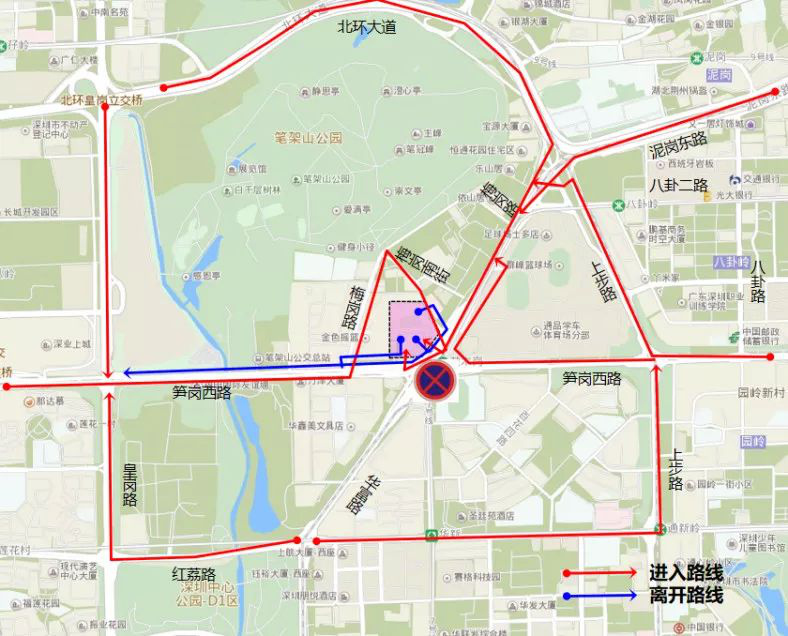 原經(jīng)筍崗西路東行 -黃木崗立交掉頭往醫(yī)院交通調(diào)整為:筍崗西路 -梅崗路 -梅崗南街。