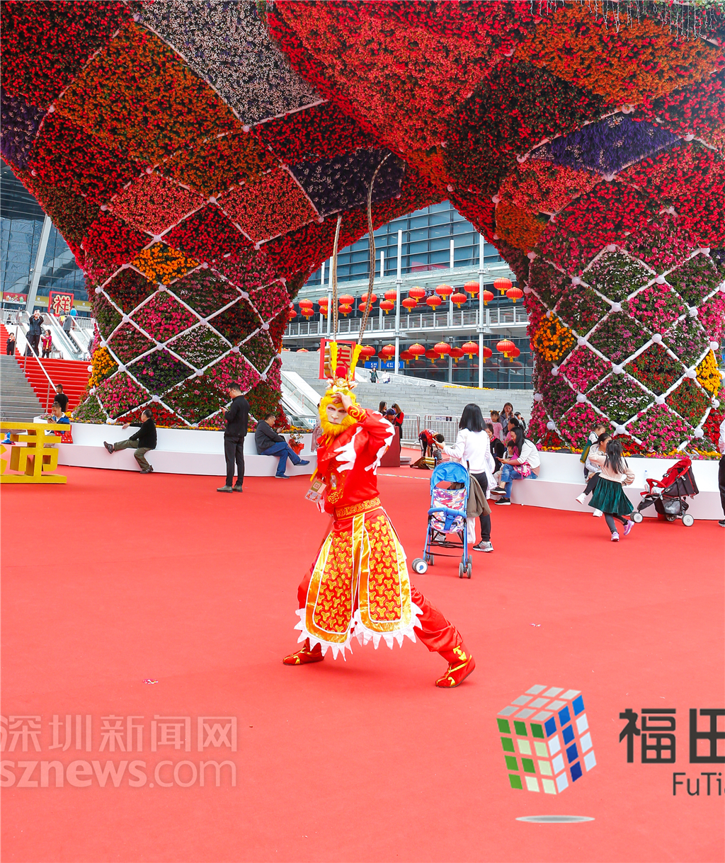 熱鬧的花市也吸引了“猴哥”過來捧場。