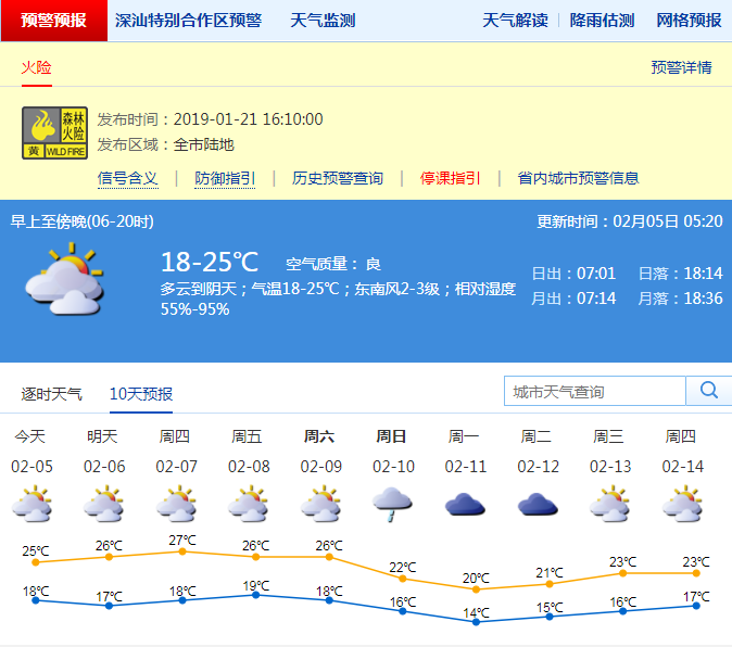 深圳新聞網(wǎng)2019年2月5日訊 深圳初一至初五(5-9日)天氣溫暖濕潤,可見陽光,早晚有輕霧或霧,初一氣溫18-24℃;初六(10日)起冷空氣影響,伴有小雨,氣溫下降。