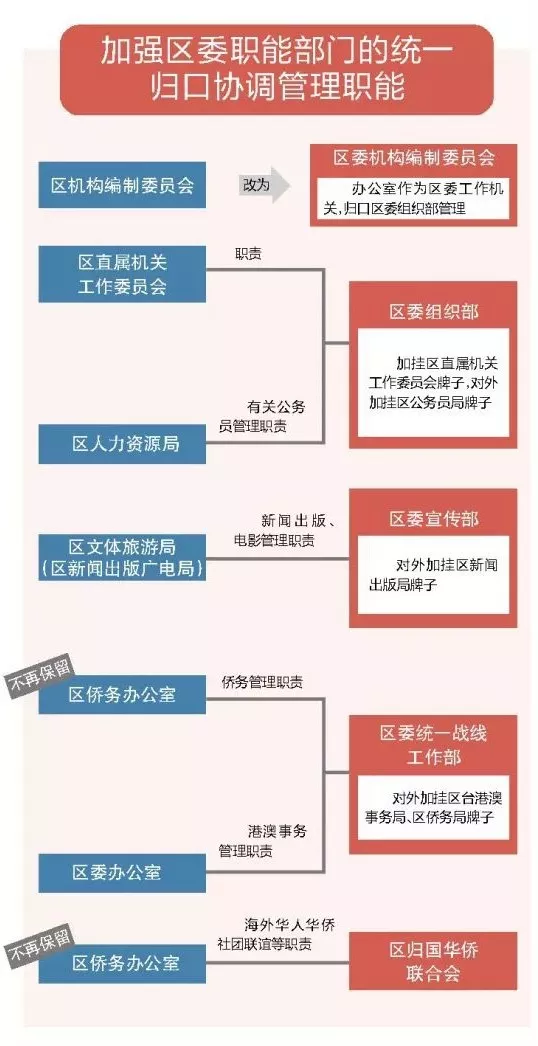 據(jù)了解,根據(jù)工作安排,區(qū)級機構(gòu)改革于3月底前基本完成。
