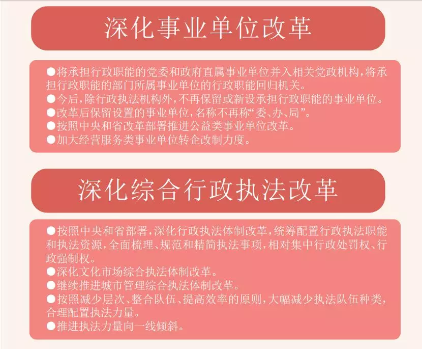 三是堅決落實中央、省委和市委決策部署。著力完善維護黨中央權(quán)威和集中統(tǒng)一領(lǐng)導的體制機制,機構(gòu)職能做到上下基本對應(yīng),不折不扣落實好各項改革任務(wù)。