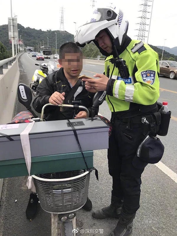 2月14日上午,深圳交警巡邏至南坪快速長(zhǎng)嶺陂大橋時(shí)發(fā)現(xiàn)一輛非機(jī)動(dòng)車(chē)上快速路。上前詢問(wèn)后得知,男子是幫客戶送禮物的,不料卻迷路了,這才誤闖了快速路。蜀黍?qū)ζ浣逃?,迅速將?dāng)事人護(hù)送下快速路路口。