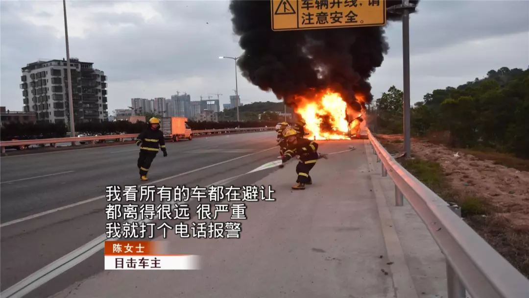 陳小姐從后視鏡中看到,大巴車上下來兩個(gè)人忙著滅火,陳小姐也第一時(shí)間提供了最重要的幫助,那就是報(bào)警。