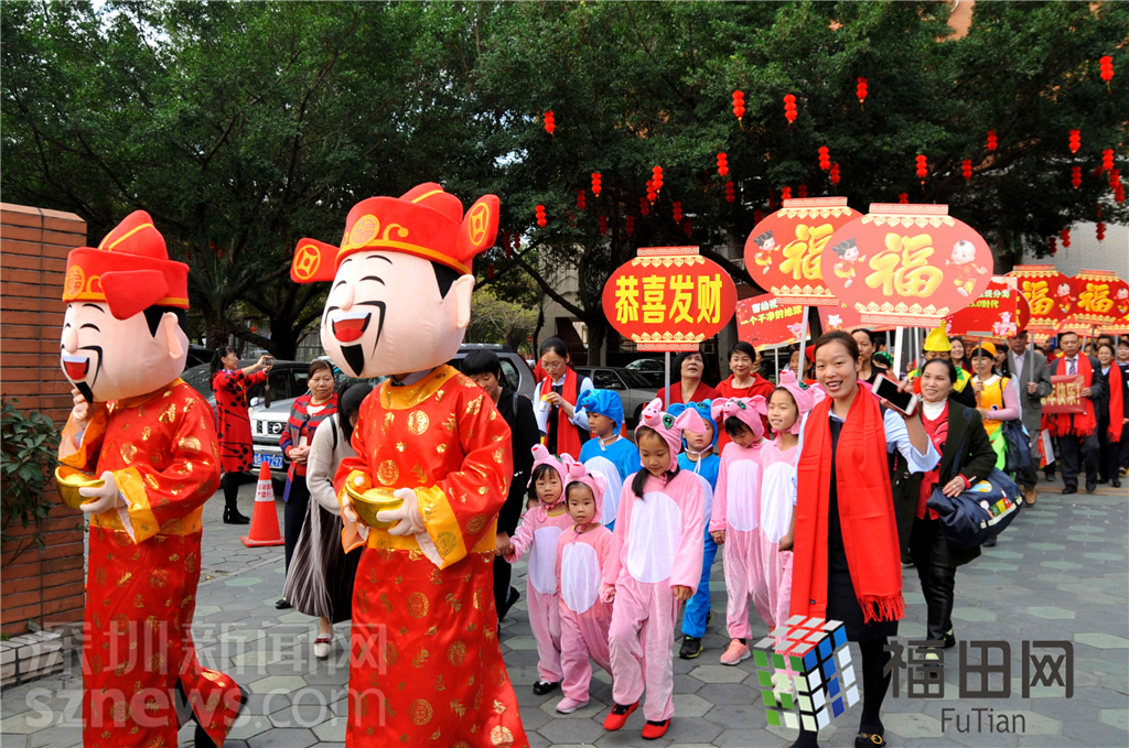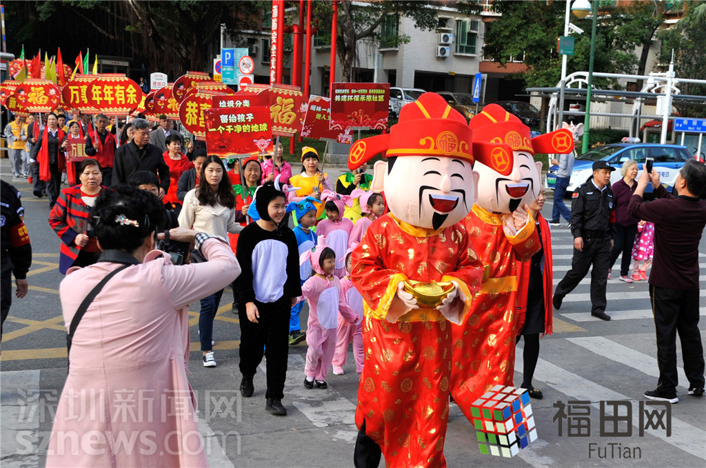 巡游方陣由梅林一村村民、梅林一村義工、梅林一村老年協(xié)會、梅林一村管理處員工組成。為了此次大年初一的大巡游,他們已經(jīng)提前一個多月進行排練了。據(jù)介紹,龐大的巡游隊伍由裝飾得美倫美奐的彩車開道,車上有財神爺坐陣,巡游的途中會給圍觀的村民送去象征生活甜蜜的賀年糖果。緊跟隨后的是:安塞腰鼓和喜慶秧歌方陣、舞龍和醒獅方陣、威風鑼鼓方陣、金豬賀年方陣、居民迎春方陣、環(huán)保方陣、歡樂員工方陣。