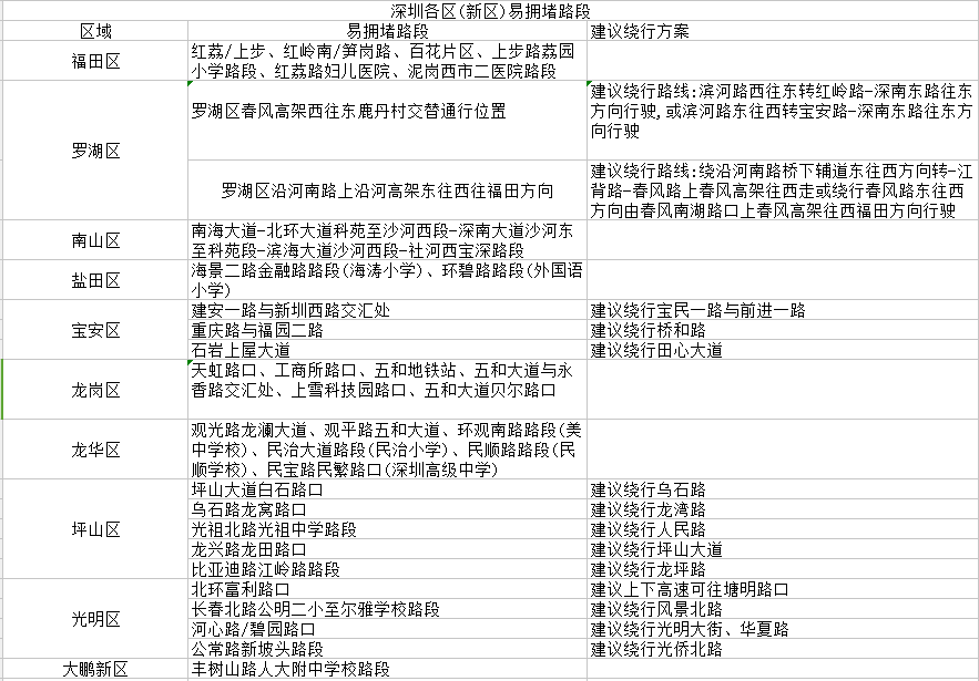 在這之前,先來(lái)看看交警盤點(diǎn)的深圳各區(qū)(新區(qū))易擁堵路段