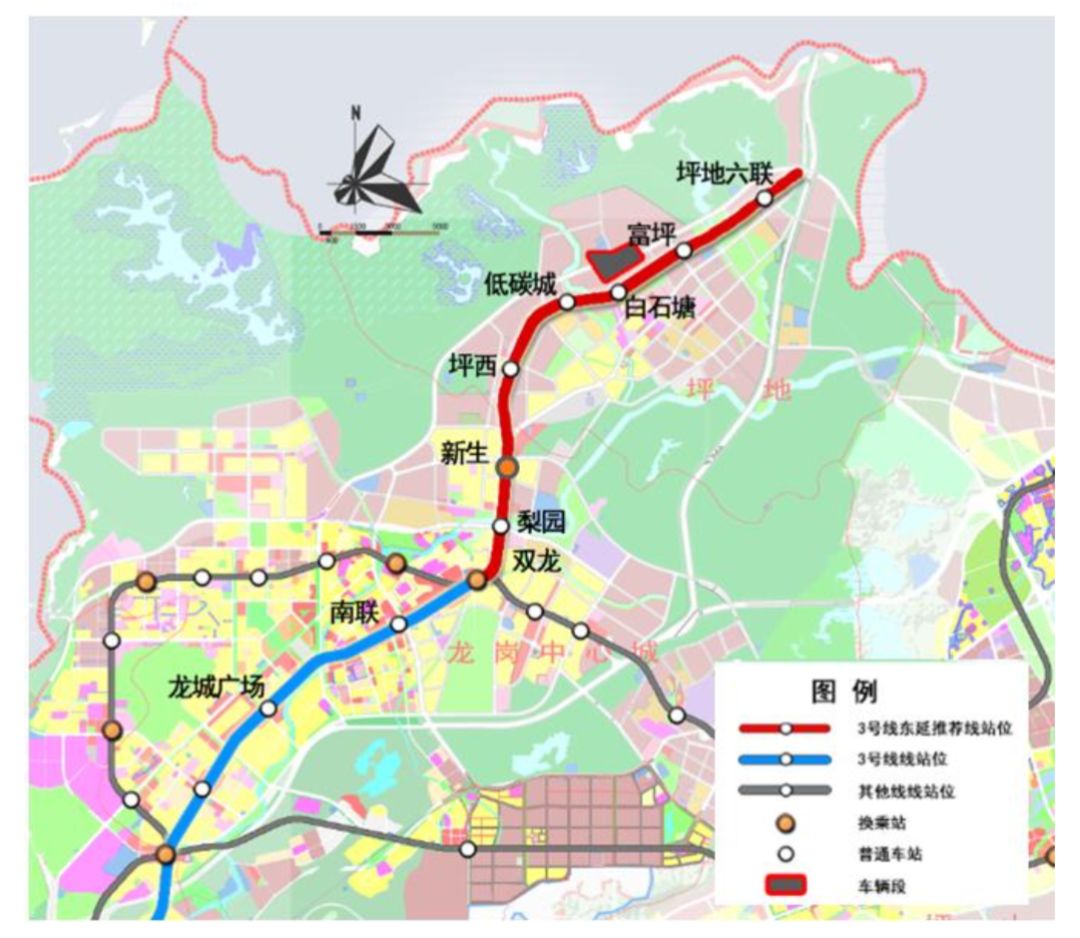 3號線東延線連接后福、新生、低山、坪西、坪地、坪東以及龍崗中心等地區(qū),并通過已建成運行的3號線連接至福田中心區(qū),是聯系坪地中心與龍崗中心、橫崗中心、布吉中心、羅湖中心以及福田中心的城市軌道干線。線路全長約9.4km,其中地上線約2.0km,地下線約7.4km。