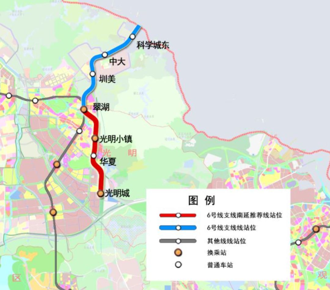 6號(hào)線支線是地鐵四期開工的5條線路之一,也是深圳和東莞之間第一條確定直連貫通的地鐵線路。6號(hào)線支線南延起于翠湖站南側(cè),向南沿光明大道高架敷設(shè),最終在廣深港高鐵光明城站的站前廣場設(shè)置光明城站,并與13號(hào)線北延相交。