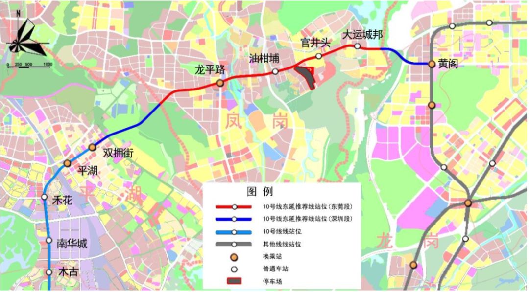 10號線東延是聯(lián)系平湖、東莞鳳崗及大運新城的普速線路,主要功能為加強龍崗中心城與平湖、坂雪崗的聯(lián)系、促進(jìn)深莞一體化。東延線路由在建地鐵10號線雙擁街站后引出,出站后轉(zhuǎn)向東北方向,下穿鳳凰山國家礦山公園,之后進(jìn)入東莞,東莞段內(nèi)沿龍平路敷設(shè),在東北師大益田小學(xué)北側(cè)向東南下穿武深高速、鹽龍大道進(jìn)入清林路,接至在建16號線黃閣站。線路全長約9.8km,設(shè)站5座,采用地下敷設(shè)方式。