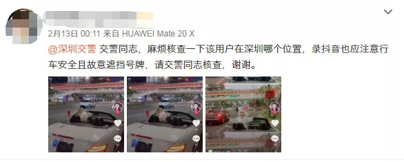 2月13日凌晨,深圳交警接到一名網(wǎng)友舉報,稱有人在路邊拍視頻還遮擋號牌。
