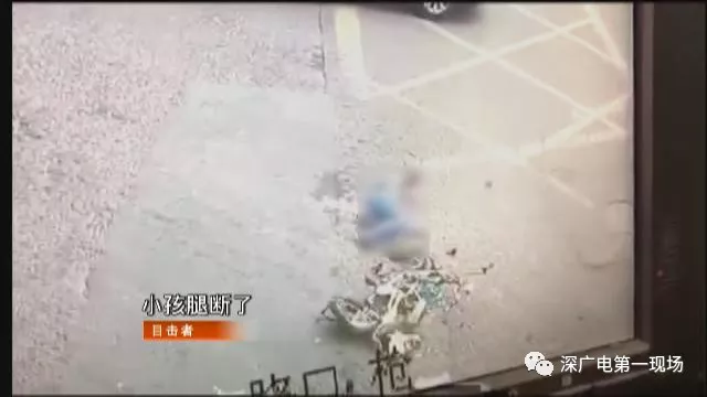 監(jiān)控畫面右下角能看到幾乎被碾碎的電動(dòng)車和摔在地上的學(xué)生,學(xué)生躺在地上掙扎,似乎左腿已不能動(dòng)彈。
