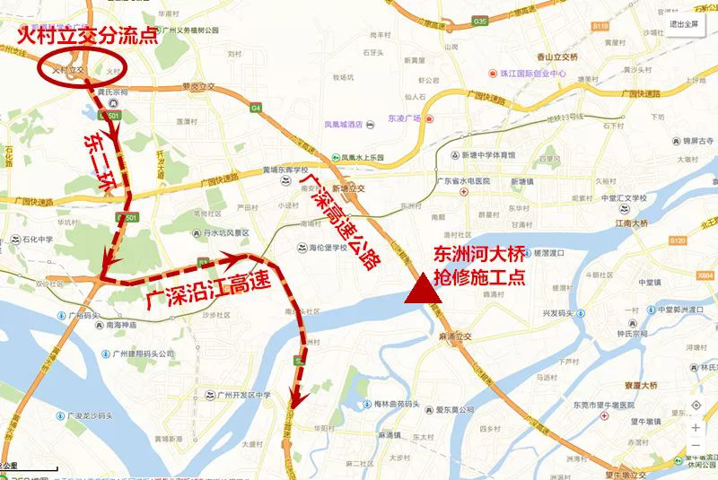 施工期間,只要你是從廣州到東莞或深圳都得下高速繞行,封路時間為今天6時至18時還請大家奔走相告!