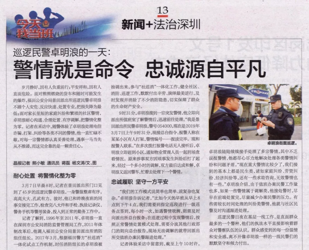 巡邏民警日夜在基層一線工作,是直面群眾最多的一個(gè)警種,他們的執(zhí)法水平直接影響著群眾對(duì)警察隊(duì)伍的認(rèn)識(shí)。群眾感受到的每一份溫情和安全感,離不開像卓明浪一樣的一線民警們的默默堅(jiān)守和傾力付出。