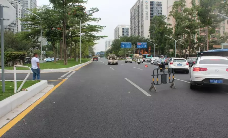 案發(fā)現(xiàn)場(chǎng)位于寶安區(qū)寶安大道新安街道中糧卡羅社區(qū)路段,南往北主道路寬13.72米,該路段設(shè)立有輔道及非機(jī)動(dòng)車(chē)道。瀝青路面,照明條件為白天,交通信號(hào)方式為標(biāo)志、標(biāo)線。