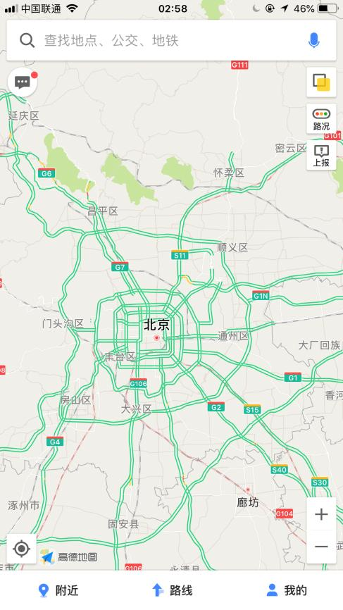 凌晨2點(diǎn)58分,北京周邊,高德地圖上看,一片綠色,讓人覺得特別舒服。