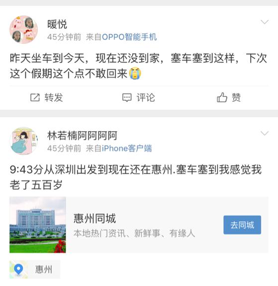 有坐大巴的朋友因?yàn)槿?chē)時(shí)間遠(yuǎn)超預(yù)期,遇上手機(jī)快沒(méi)電,心急不已,只能斷斷續(xù)續(xù)地開(kāi)了又關(guān)機(jī),以便與接他的家人保持聯(lián)系又留住最后一點(diǎn)電量。而家人也在當(dāng)?shù)乜h城等了他四五個(gè)小時(shí)。