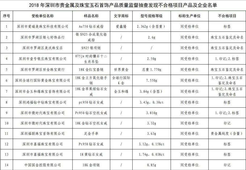 原標題:深圳最新抽檢珠寶抽檢結(jié)果公布,不合格產(chǎn)品發(fā)現(xiàn)率16.3%