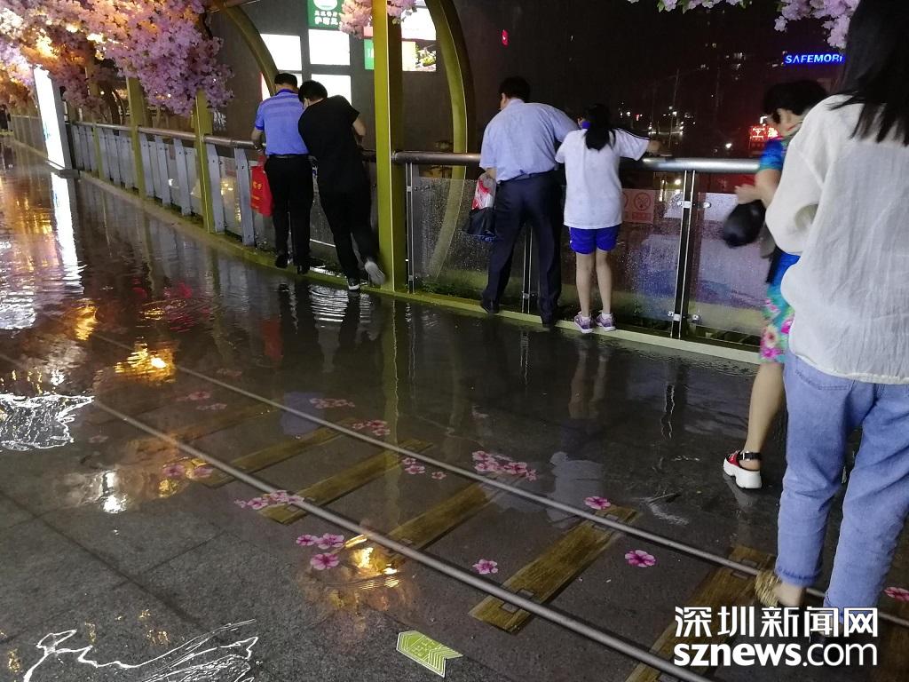 深圳暴雨特效開啟,市民紛紛進入躲雨模式。(記者 邱曉潔 于丹竹頭地鐵站