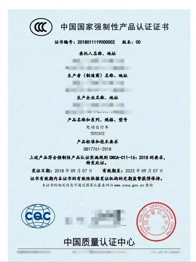 實(shí)行電動(dòng)自行車銷售目錄或公告管理的地區(qū),新標(biāo)準(zhǔn)正式實(shí)施后所有不符合新標(biāo)準(zhǔn)、未獲CCC認(rèn)證的目錄車型全部作廢。