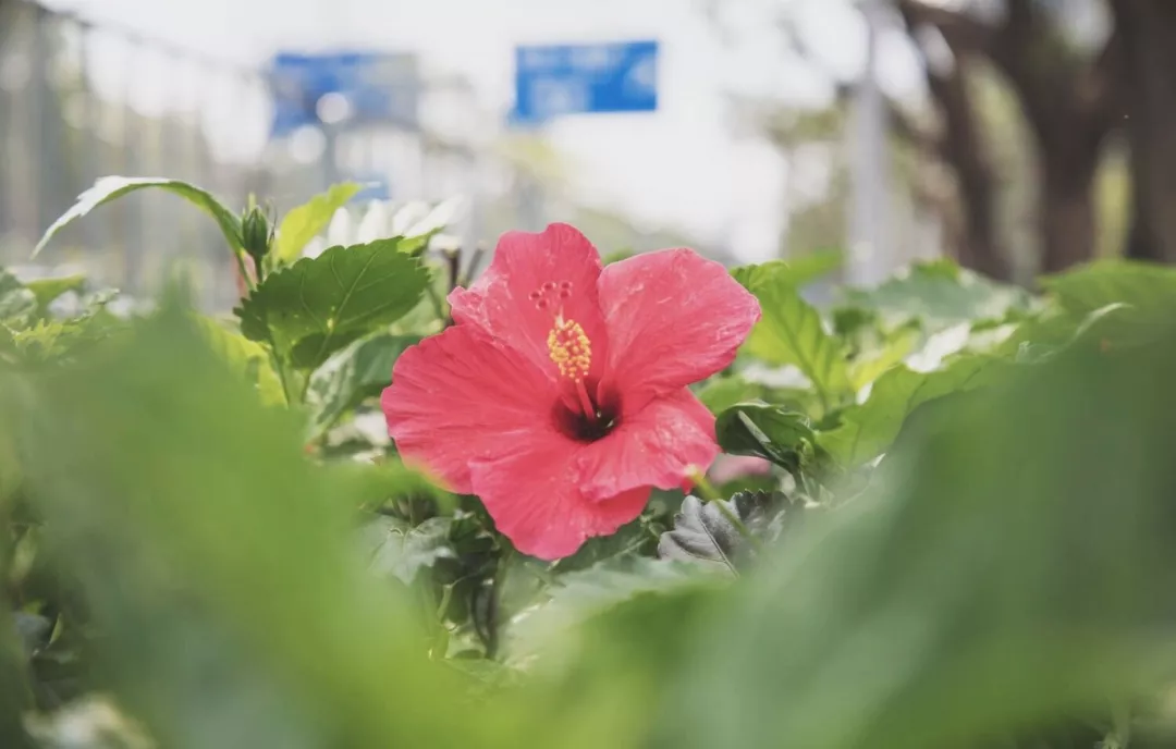 如火般熱烈的勒杜鵑,鋪滿了四公里長(zhǎng)的機(jī)場(chǎng)南路,修長(zhǎng)的枝丫向陽舒展,在微風(fēng)中搖曳。勒杜鵑一年兩次花期,每年的1、2月是開得最熱烈的時(shí)候。