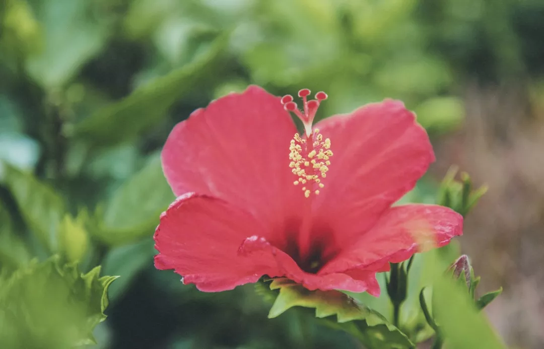 除了觀賞,朱槿的花蜜還可食用,初開的朱槿,去掉底部的花萼,便可以吮吸到甜甜的花蜜。記得小時(shí)候也曾嘗過,甜蜜的滋味還留在記憶里。