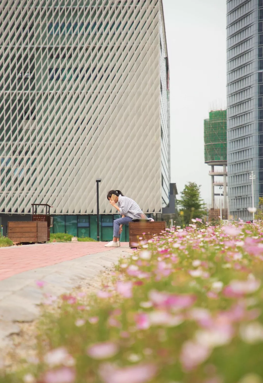 從寶安圖書館步行數(shù)十步,便是一大片浪漫的花海。風(fēng)從不遠(yuǎn)處的海面吹來,那些隨風(fēng)起舞的白色、黃色、紫色、紅色、粉色的小花,就是秋英。