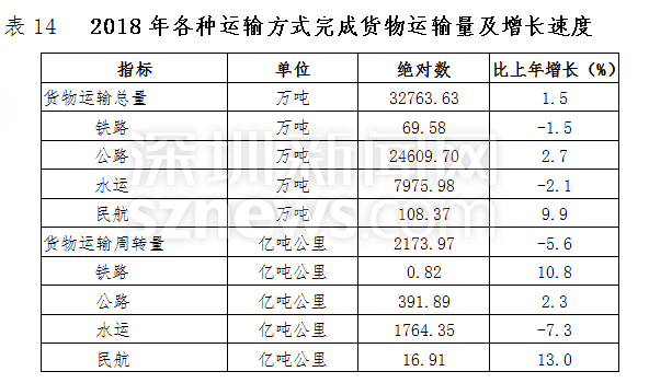 全年貨物運輸總量32763.63萬噸,比上年增長1.5%。貨物運輸周轉(zhuǎn)量2173.97億噸公里,下降5.6%。