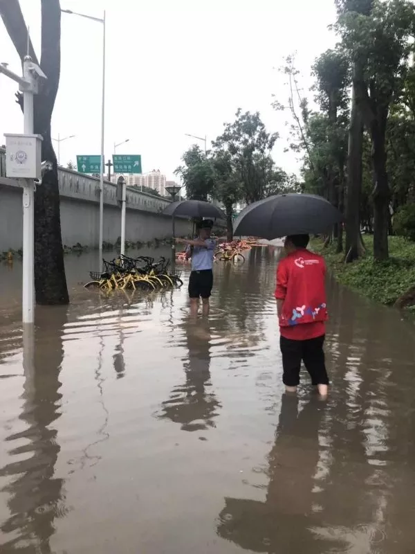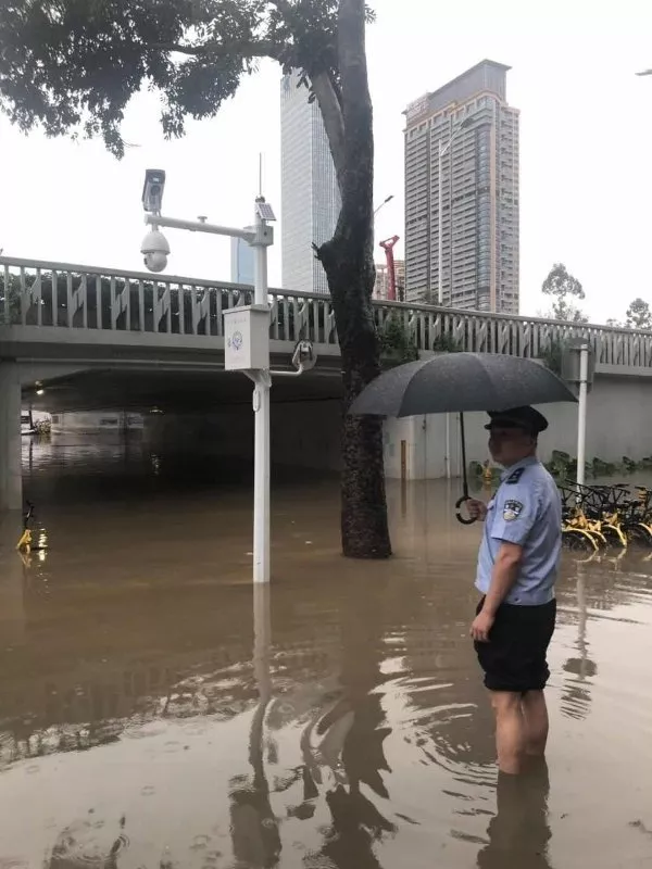昨日上午9時(shí)許,福田區(qū)突降暴雨。福強(qiáng)派出所民警周玉鐮和蘭東階發(fā)現(xiàn)皇崗立交橋下出現(xiàn)積水,對(duì)過(guò)往車輛和行人造成隱患,立即開(kāi)展疏導(dǎo)交通和幫助群眾工作,直至積水退去。
