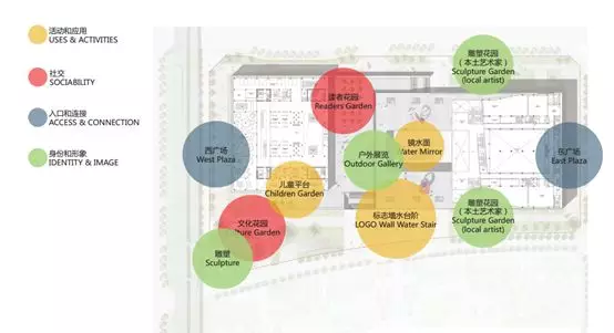同時(shí),設(shè)計(jì)定義了不同的功能性景觀分區(qū),一靜一動(dòng)、或?qū)庫o或喧囂、光影交融、密集與開放、集聚與獨(dú)處的可變空間,為主體建筑附加了多樣化的室外活動(dòng)場所,例如專門為圖書館訪客設(shè)置的讀者花園、兒童平臺(tái)、文化花園,以及在美術(shù)館區(qū)域設(shè)置的雕塑花園、戶外展覽區(qū)及鏡水面廣場。滿足不同的活動(dòng)場景下市民對(duì)空間的需求,讓城市空間真正地為城市及市民所用。