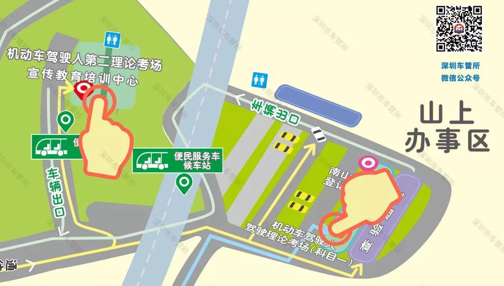 深圳市南山區(qū)龍珠三路原西麗車管所山頂(原九選三科目二考場(chǎng))(5月3日起,增加夜考場(chǎng)次)。