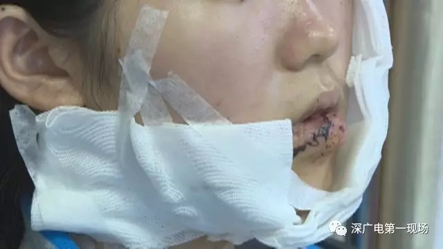 ↑下午兩點(diǎn),在寶安人民醫(yī)院急診科的創(chuàng)傷中心,小楊正在接受治療,她的臉上綁著繃帶,縱橫交錯(cuò)的傷口依然清晰可見。