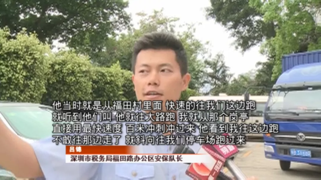 當天早上,深圳市稅務局福田路辦公區(qū)的安保隊長呂錦像往常一樣,正在崗位上值著早班。突然聽到外面一陣騷亂,他趕忙起身查看情況。