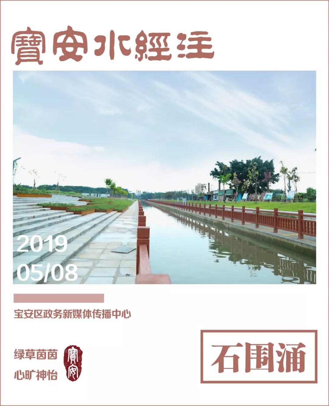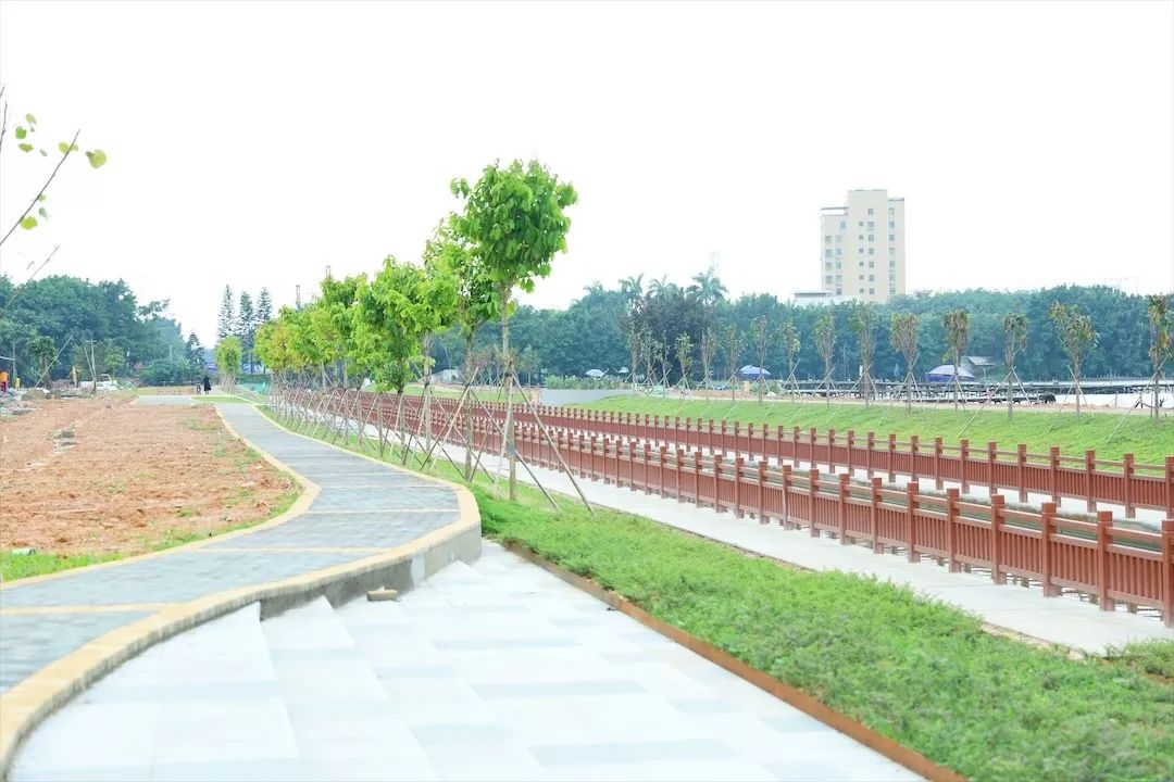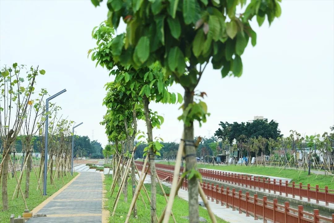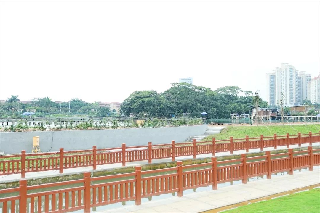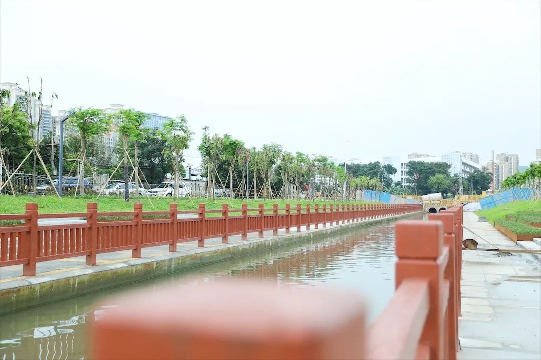 走在石圍涌岸邊,看到兩岸新修的朱紅色仿木欄桿與藍天、清水、綠草呼應(yīng),繪就了一幅自然、和諧、美麗的生態(tài)畫卷。