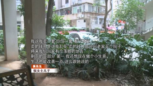 侯女士說(shuō),自己就這么一個(gè)兒子,兒子從4個(gè)月大就是由自己一手帶大,自己走了以后,房子都是他的,何苦這么折騰她。所以自己就不同意兒子賣房,這也是兒子這一個(gè)多月做出過(guò)激舉動(dòng)的原因。