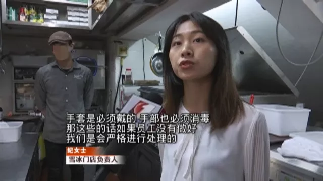 事件引起執(zhí)法部門關(guān)注,市場監(jiān)督管理局福田管理局華強北所的執(zhí)法人員,突擊檢查這家雪冰甜品店的后廚。對于員工徒手加工食品的做法,雪冰甜品店負責人表達歉意。