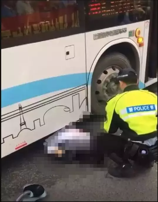 從報料市民拍到的現場畫面可以看到,在一個右轉彎路口處,一輛公交車疑似和一名路人發(fā)生了碰撞,一名身穿白色上衣的女子倒地,幾乎整個下半身都被卷入了公交車底,女子臉上和身上都有明顯血跡,身旁一位交警在照看著她。