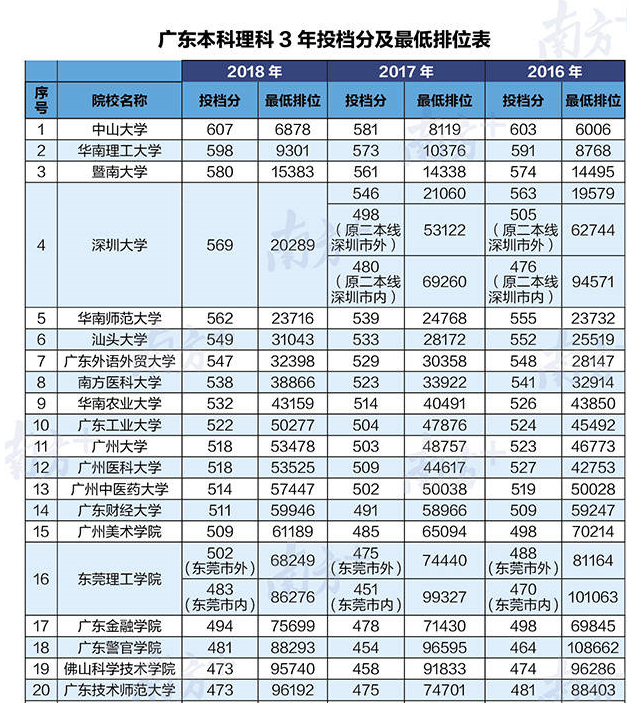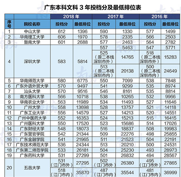 只能給大家找來廣東本科文理科3年投檔分和最低排位表?。ú糠郑?/p>