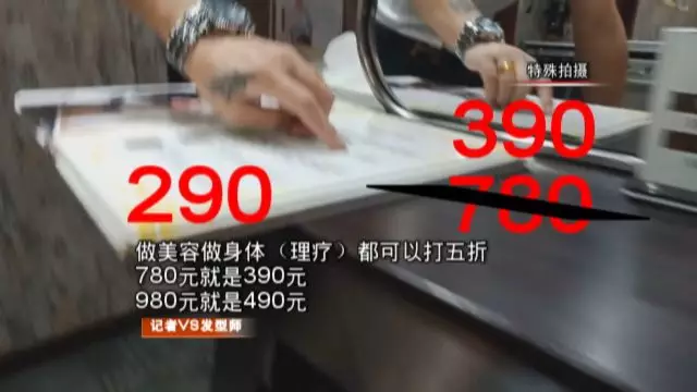 一路記者以顧客的身份,進入G梵希石廈店表示要燙頭。一位發(fā)型師提供了燙頭發(fā)的價目表。水解因子燙580塊、塑造強勁燙780塊、弱酸性蛋白燙980塊、還有價格將近千塊錢的進口燙發(fā)產(chǎn)品。