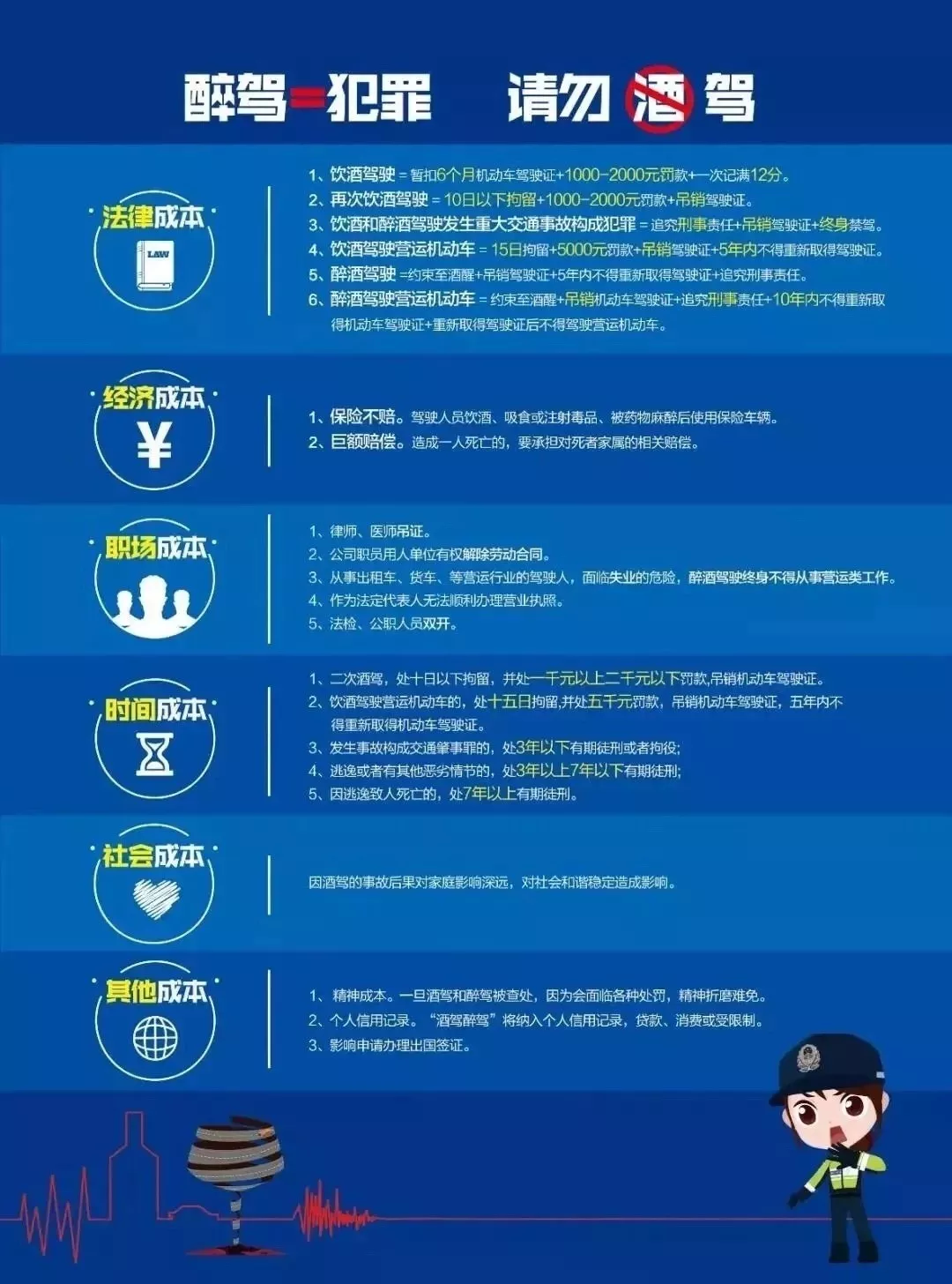生命無價,酒后禁駕。一時僥幸換來的只能是后悔,酒駕的后果你承擔(dān)不起!