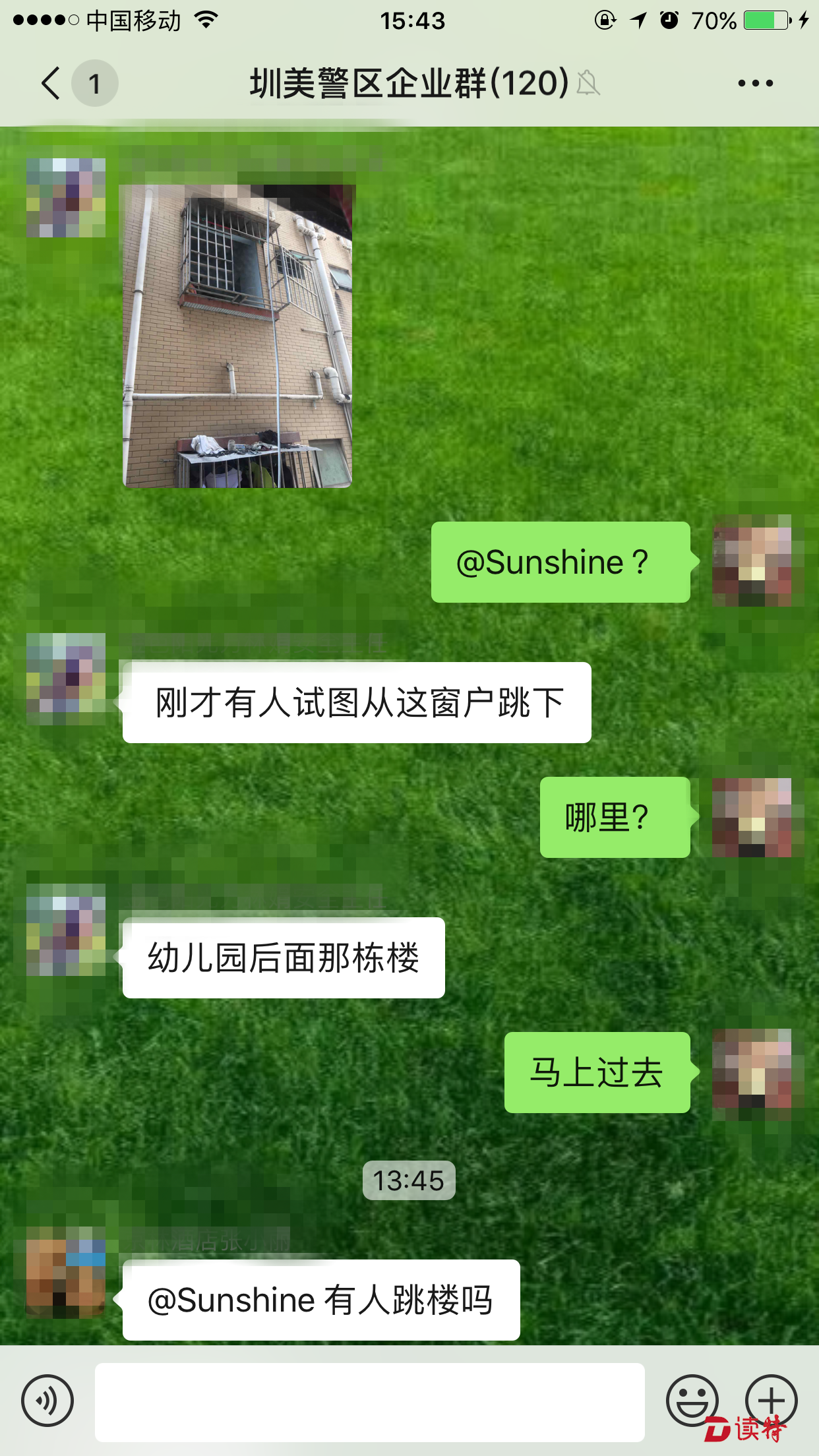 就在圳美警區(qū)隊(duì)員現(xiàn)場處置的過程中,微信群中的成員紛紛詢問事件情況。在了解到圳美警務(wù)室的隊(duì)員不到1分鐘就趕到現(xiàn)場后,大家對警區(qū)工作人員接連點(diǎn)贊。(讀特記者 王茂程 通訊員 胡澤瑜 溫小龍)