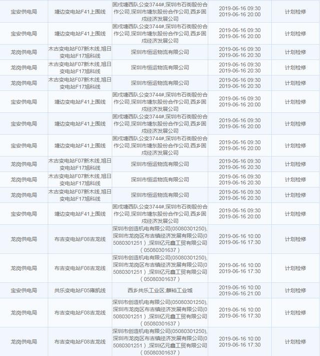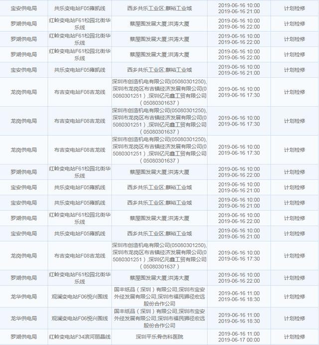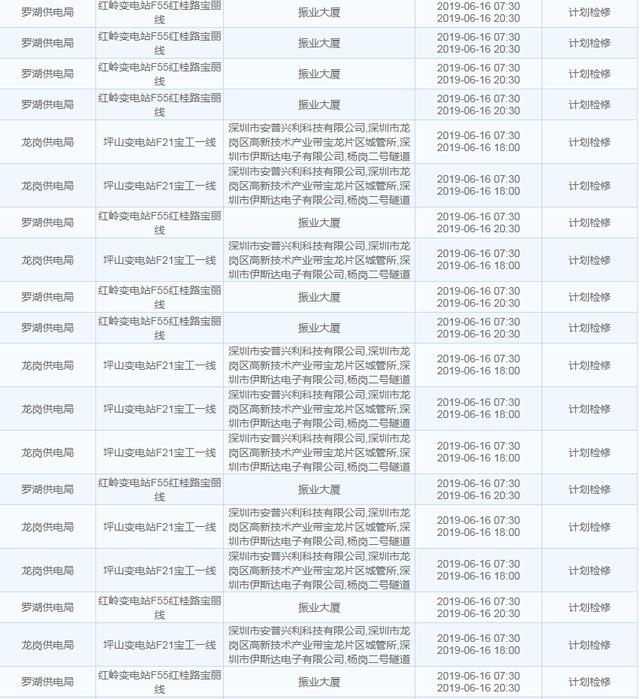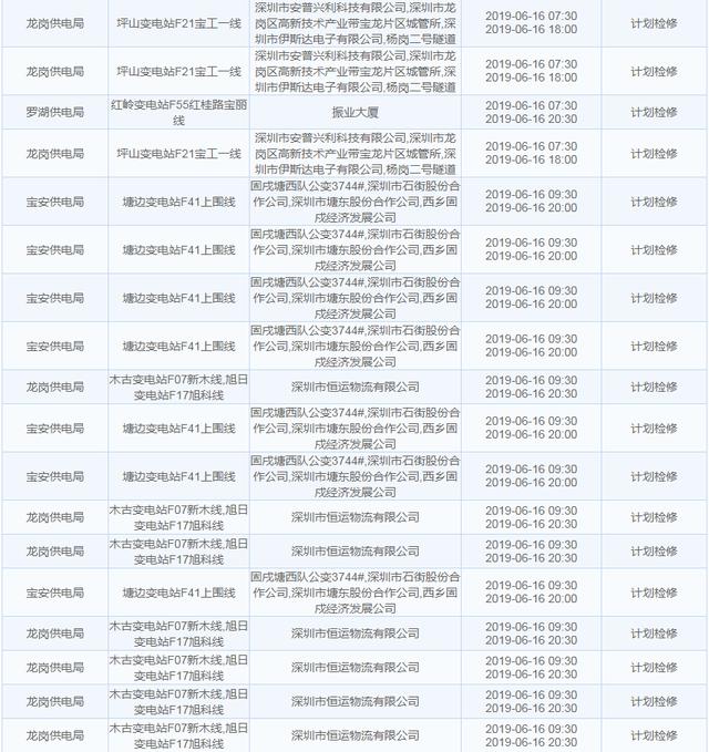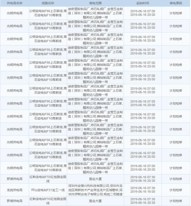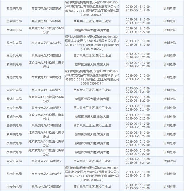南方電網(wǎng)發(fā)布6月13日至6月16日深圳停電計劃 涉及多個區(qū)
