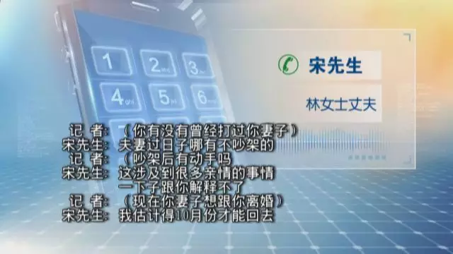 為了核實林女士的說法,記者撥通了林女士丈夫宋先生的電話。宋先生沒有承認家暴事實,回應的是相當“委婉”。