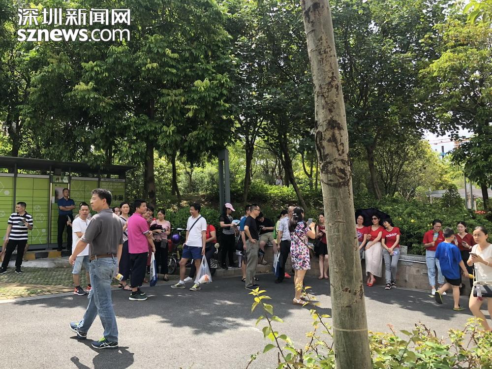 10:35時(shí),2019深圳中考第一科語(yǔ)文即將結(jié)束考試,家長(zhǎng)們?cè)诘群颉?/p>