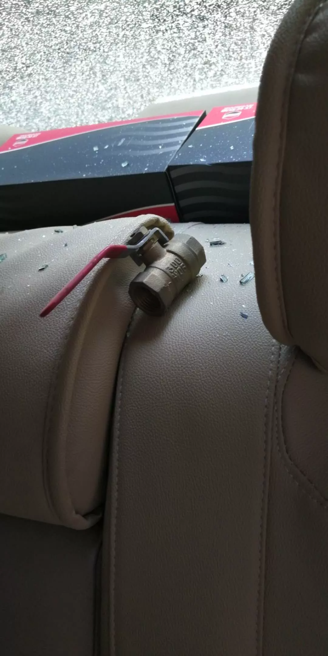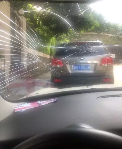 ▲車玻璃被砸了一個大洞
