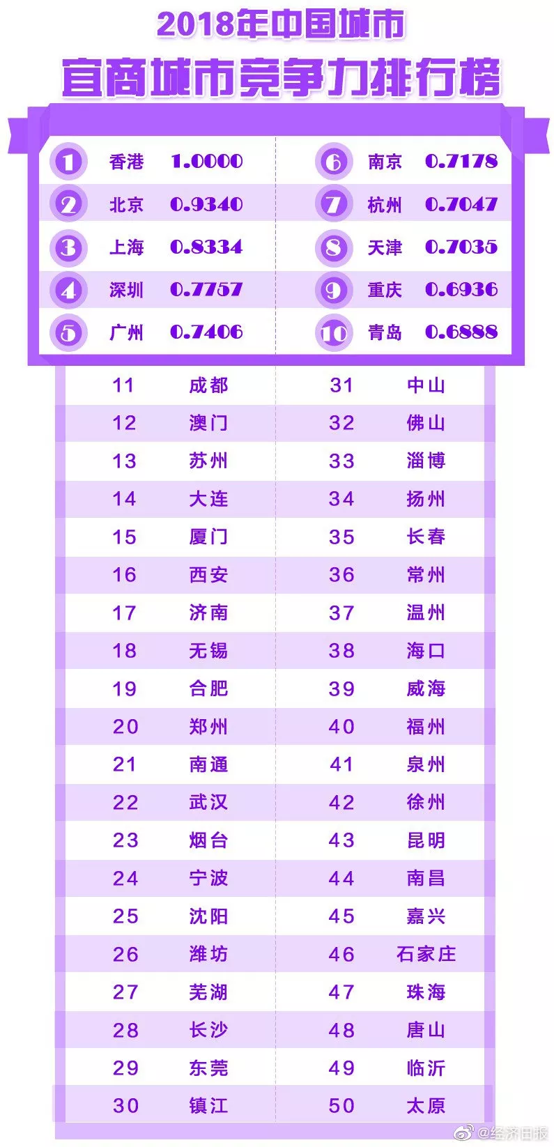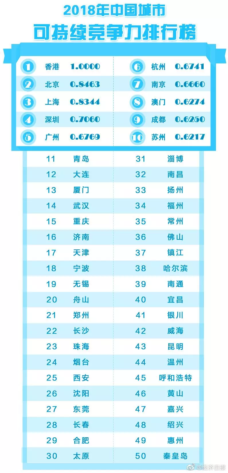 2018年中國城市綜合經(jīng)濟(jì)競爭力排行榜出爐,深圳排第一
