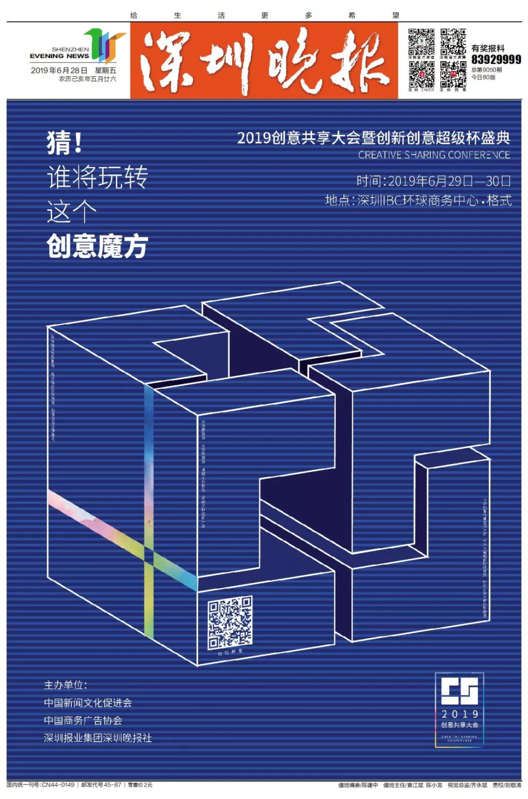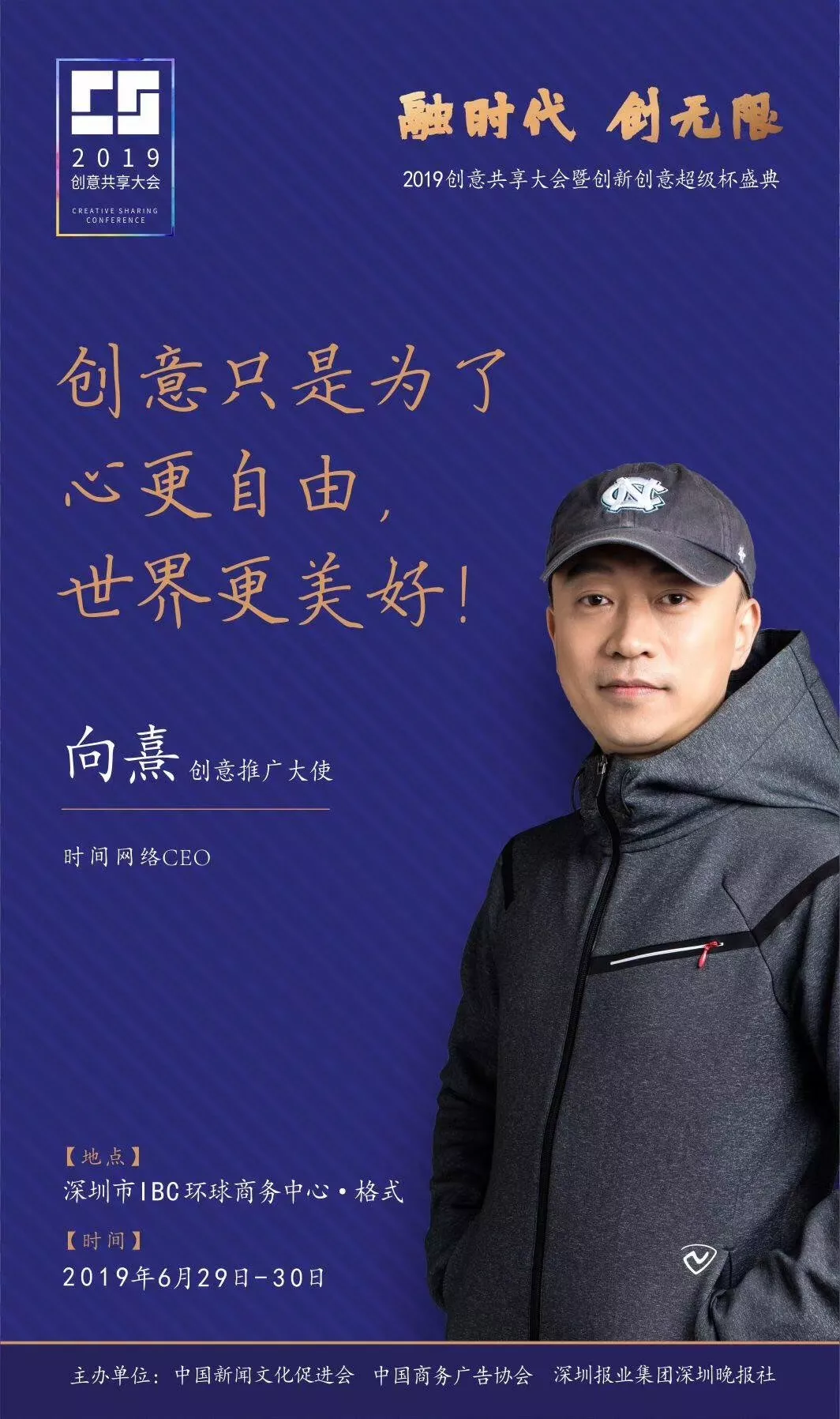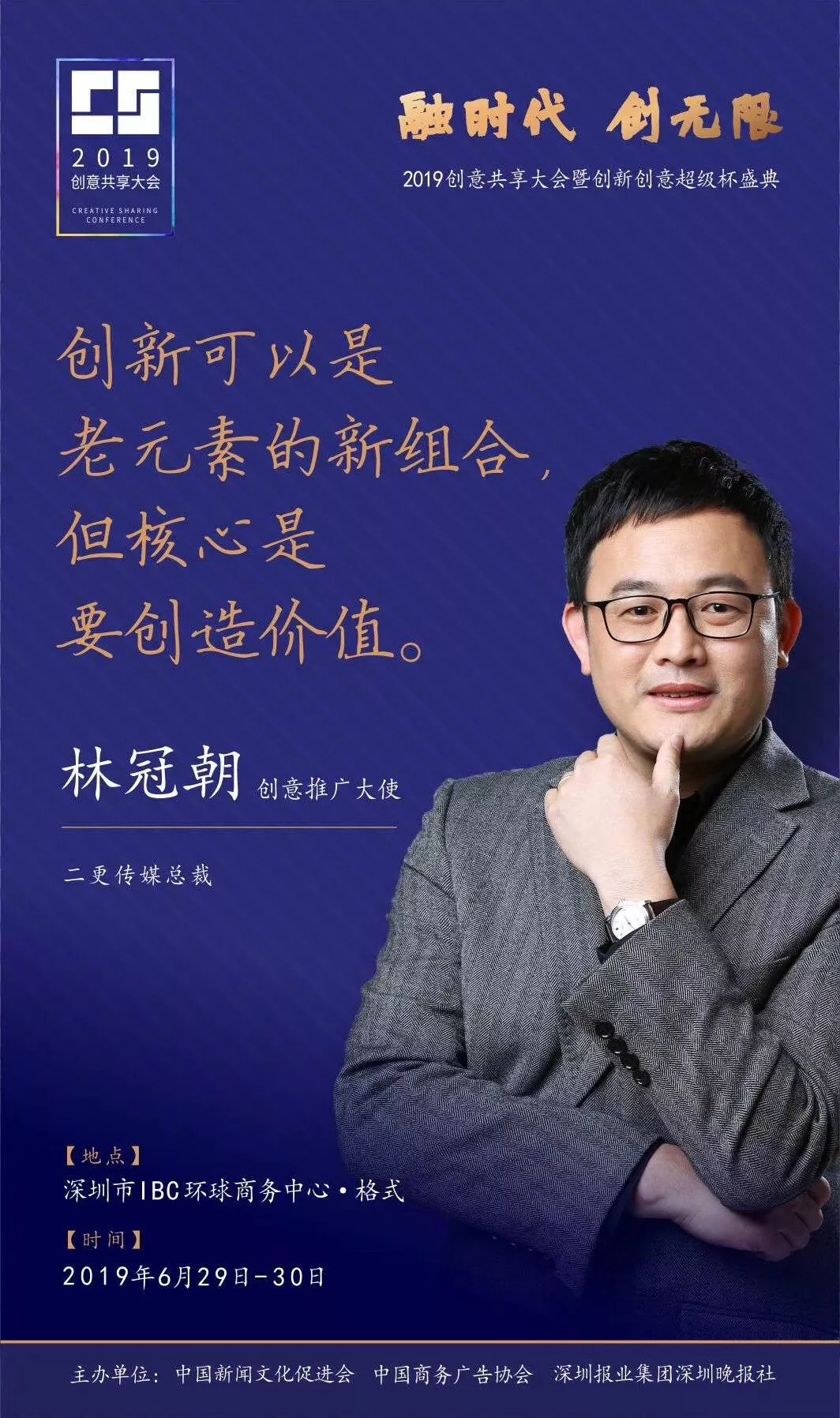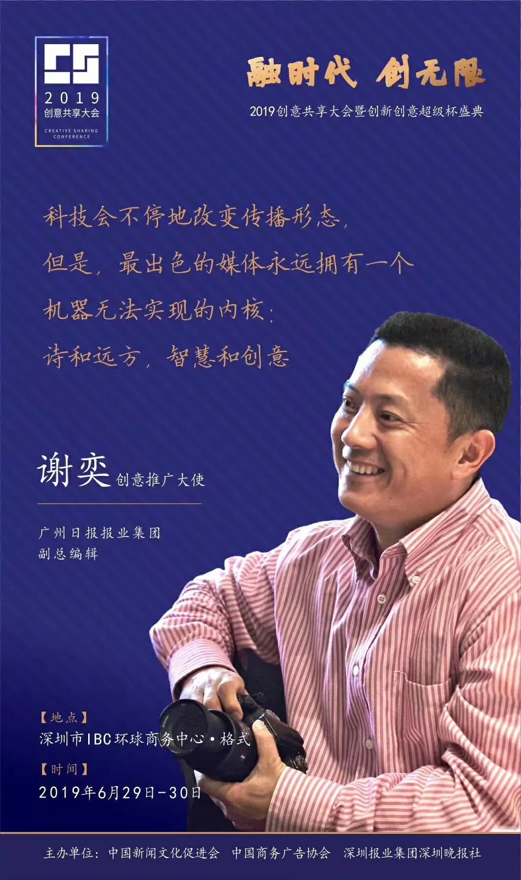 為了呼應這個時代命題,構建創(chuàng)新創(chuàng)意共同體,擘畫美好圖景和未來趨勢,中國新聞文化促進會、中國商務廣告協(xié)會和深圳報業(yè)集團深圳晚報社聯(lián)合發(fā)起主辦2019創(chuàng)意共享大會暨創(chuàng)新創(chuàng)意超級杯盛典。