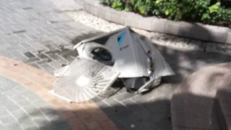 據(jù)說(shuō)是工人在安裝空調(diào)時(shí)不小心脫手導(dǎo)致的。