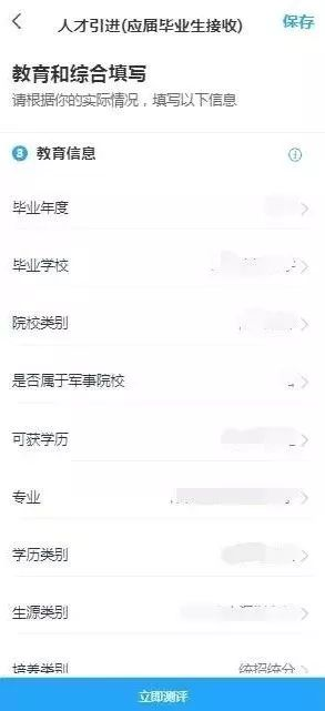 填寫完成后點擊下方測評按鈕,系統(tǒng)將對填寫的信息進行測評。