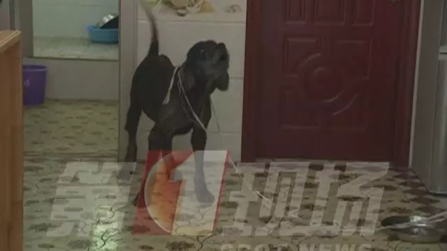 上午十點,記者跟隨社區(qū)物業(yè)管理人員,找到了狗主人胡先生。這只被周邊居民多次投訴的大狗,就栓在客廳里,看到陌生人前來,馬上發(fā)出威脅的吼聲。