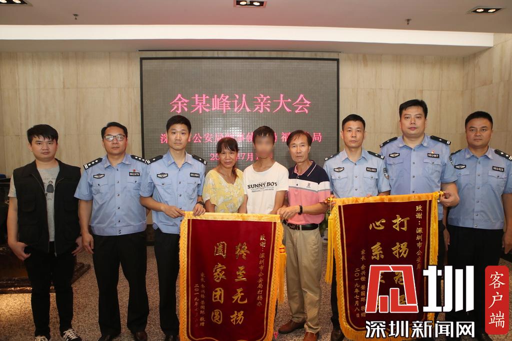 深圳新聞網(wǎng)2019年7月18日訊(記者 涂勝 通訊員 施冰凌)“終于找到你了,我的孩子!”7月18日上午,在深圳市公安局刑事偵查局和福田分局的幫助下,尋子18年的余氏夫婦在深圳市刑偵局技術(shù)處一樓見(jiàn)到了兒子,團(tuán)聚現(xiàn)場(chǎng)余氏夫婦將兒子緊摟懷中,淚流滿面。